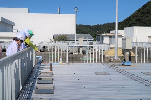 水処理施設の心臓部であるエアレーションタンク内部の様子を見学しました。