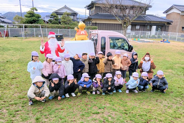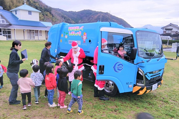 令和7年12月17日(水)に鳥取市内5カ所の保育園や幼稚園でごみの分別教育とクリスマスプレゼントの贈呈を行いました。