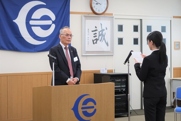 市民生活の中で縁の下の仕事と思われるかもしれませんが、社訓の『誠(まごころ)』の気持ちで真摯に対応してください。そして、新入社員のみなさんも公社の3K、1)かっこいいのK 2)健康的のK 3)好感のKを心掛けて業務を遂行してください。