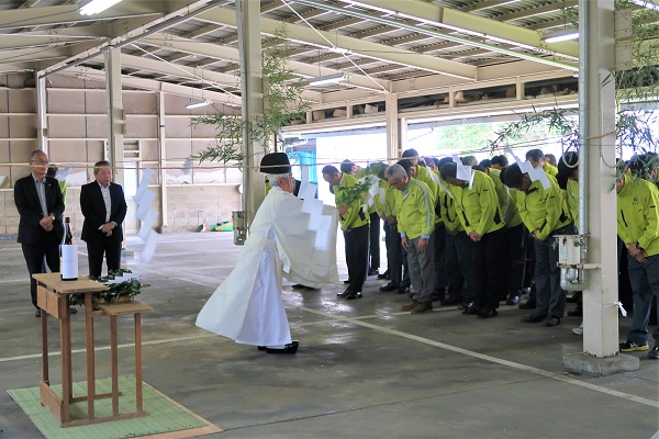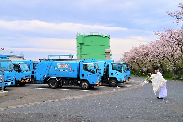お知らせ トップページ > お知らせ一覧 > 令和8年度の交通安全祈願祭を行いました。 令和8年度の交通安全祈願祭を行いました。 2026年4月17日 桜舞い散る春の陽気の中、今年度も交通安全祈願祭が全職員参加で執り行われました。祈願祭の目的は1年間の交通安全を祈るもので、賀露神社の岡村宮司に祈願していただきました。春の交通安全運動週間でもあり、全職員が交通弱者に気を配り安全運転に心掛ける事を誓いました。全職員の交通安全を祈願していただきました。 宮司による交通安全祈願 宮司より交通安全祈願を受ける収集運搬車 <<戻る - Powered by PHP工房 -