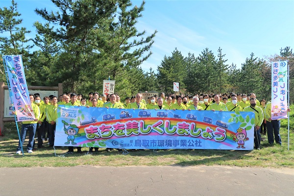 この活動は県東部の貴重な財産である鳥取砂丘の美しい景観を守るため、昭和55年から春と秋の2回開催されており、総勢約2600名の参加者のなか当公社からも133名が参加しました。